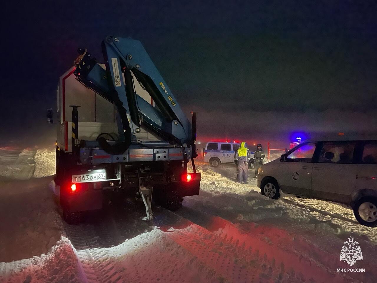Сотрудники Государственной инспекции по маломерным судам (ГИМС) оперативно приступили к патрулированию акватории на снегоходах, несмотря на сложные погодные условия. С помощью специальной техники спасателям удалось эвакуировать большинство застрявших автовладельцев. Людей организованно доставили в безопасные зоны — город Анадырь и поселок Угольные Копи.