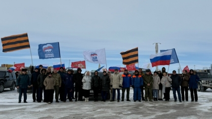 Колонна из 17 автомобилей проследовала по ледовой переправе, соединяющей Анадырь и поселок Угольные Копи. Участники украсили свои машины государственной символикой и флагами России.